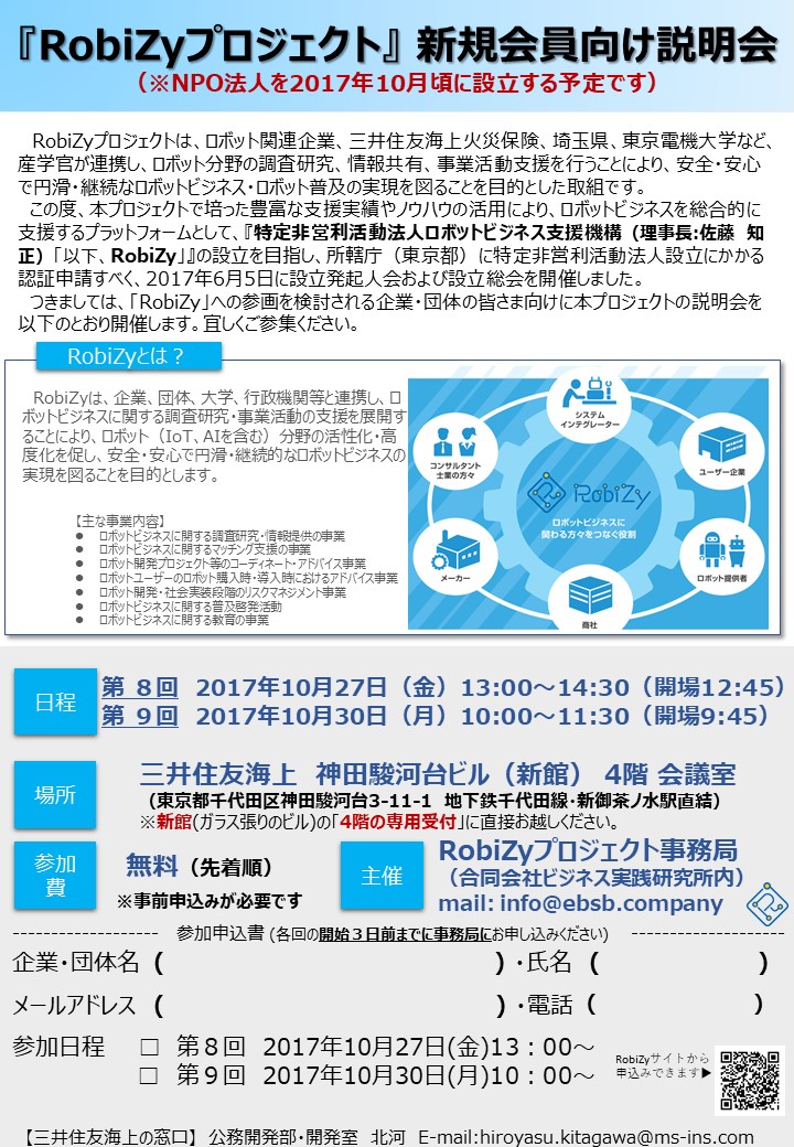 『RobiZyプロジェクト』新規会員向け説明会へのお申込みは、こちらで受付しております。