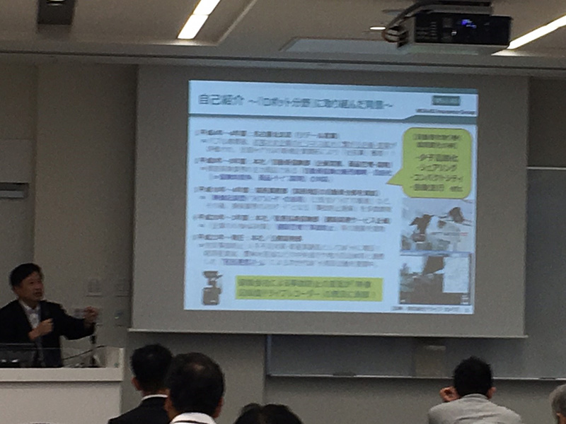 最初に三井住友海上の北河氏よりロボットの実用化、ビジネス化について講話をおこないました。