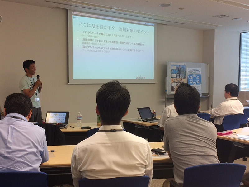 講師はRobiZyアドバイザーに就任している株式会社アドダイス代表取締役伊東大輔氏です。同社は東洋経済の「日本を変える100社」に選出され、関西電力、日本マイクロソフトとのIoT実証実験を行うなど、AI、IoTの分野で注目を集めています。